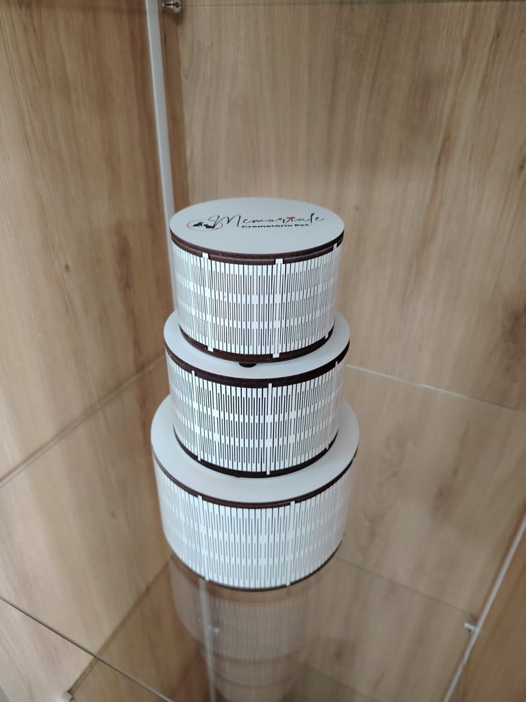 Urnas personalizadas com a identidade do crematório, pensadas para guardar com carinho as cinzas do seu pet e preservar sua memória com respeito e delicadeza.