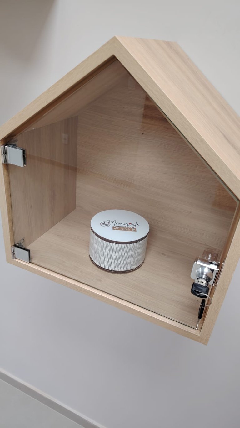 Uma homenagem especial: a casinha guarda com cuidado a urna do seu pet, representando o lugar de amor e acolhimento que ele sempre teve na sua vida.